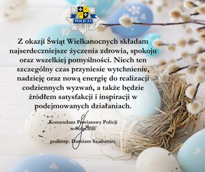 Życzenia Komendanta Powiatowego Policji w Sulęcinie z okazji świąt Wielkanocnych