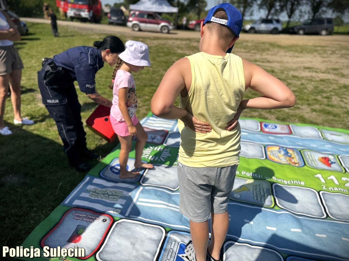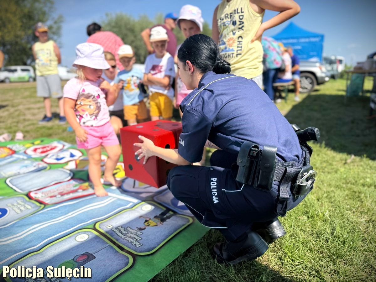 Miniony sierpniowy weekend był bardzo pracowity dla sulęcińskiej Policji. Na terenie naszego powiatu odbywało się bowiem wiele wydarzeń plenerowych. Organizatorzy jak zawsze mogli liczyć na nasze wsparcie. Czuwaliśmy nad bezpieczeństwem uczestników – meczów piłkarskich oraz pikników i festynów rodzinnych. W tym „gorącym” okresie, dokładamy wszelkich starań, aby być wszędzie tam, gdzie Państwo tego potrzebujecie. To już niemal coroczna tradycja, iż jesteśmy częścią międzynarodowego wydarzenia, które odbywa się zawsze w sierpniu na terenie Przyborowa (gmina Słońsk). Zaprezentowaliśmy stoisko promocyjne jednostki. Na odwiedzających czekał sprzęt policyjny, strefa rekrutacji i oczywiście wielkoformatowa gra planszowa „Bezpieczni na drodze z Policją”. Zaraz po jej rozłożeniu, już ustawiła się kolejka chętnych. Dzieci i młodzież rywalizowali o miano mistrza w zakresie znajomość znaków i przepisów drogowych oraz zasad udzielania pierwszej pomocy. Edukowaliśmy na rzecz bezpieczeństwa nad wodą. Osoby pełnoletnie zachęcaliśmy do wstąpienia w szeregi formacji. To było bardzo miłe popołudnie spędzone pod egidą policyjnej profilaktyki.