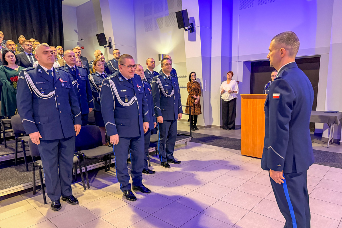 Piątek (30 stycznia) był bardzo ważnym i wzniosłym dniem dla sulęcińskiej Policji . Punktualnie o godzinie 08.00 w sali widowiskowej Sulęcińskiego Ośrodka Kultury odbyła się uroczystość z okazji pożegnania i przywitania ze sztandarem Komendanta Powiatowego Policji w Sulęcinie. Po 30 latach służby z mundurem pożegnał się podinspektor Krzysztof Staszewski. Na tym stanowisku zastąpił go podinspektor Damian Szafraniec. W wydarzeniu udział wzięli znamienici goście: Pan inspektor Rafał Banach I Zastępca Komendanta Wojewódzkiego Policji w Gorzowie Wielkopolskim, Pan Tomasz Prozorowicz Starosta Sulęciński, burmistrzowie, wójtowie, Kapelan Ksiądz Sławomir Przychodny, Panie i Panowie Komendanci Powiatowi oraz przedstawiciele kadry kierowniczej z Komendy Wojewódzkiej Policji w Gorzowie Wielkopolskim oraz jednostek powiatowych Policji z Sulęcina i Międzyrzecza, przedstawiciele wymiaru sprawiedliwości, wojskowi, strażacy, nadleśniczy oraz osoby na co dzień wpierające pracę jednostki. Głównym punktem wydarzenia było pożegnanie i przywitanie się ze sztandarem oraz złożenie meldunków o zdaniu i objęciu obowiązków służbowych. Następnie głos zabrał inspektor Rafał Banach. W swoim przemówieniu podziękował on za oddaną wieloletnią służbę podinspektorowi Krzysztofowi Staszewskiemu, wręczając na pamiątkę piękny ryngraf. Podkreślił, iż zawsze mógł liczyć na pełne zaangażowanie i profesjonalizm. Następnie zwrócił się do podinspektora Damiana Szafrańca, wyrażając pewność, iż sulęcińska jednostka zyskuje doświadczonego przełożonego, który będzie kontynuował oddaną służbę na rzecz bezpieczeństwa mieszkańców powiatu. Kolejno głos zabrał podinspektor Damian Szafraniec, już jako pełniący obowiązki Komendant Powiatowy Policji w Sulęcinie, zapewnił, iż dołoży wszelkich starań, aby kontynuować pracę swojego poprzednika. Zaznaczył także, iż każdy policjant może liczyć na jego wsparcie i pomoc. Następnie przemówienie wygłosił podinspektor Krzysztof Staszewski, zwracając się do swoich współpracowników oraz zaproszonym gościom: „Każdy etap był dla mnie ważny, bo tworzyli go ludzie, bez których wile rzeczy nie wyglądałoby tak jak wygląda dziś. Nie zawsze było łatwo, ale to Wy sprawialiście, że chciało się przychodzić do służby nawet w najtrudniejsze dni. Dziękuję za lojalność, wsparcie, profesjonalizm i koleżeństwo, które zawsze tu czułem. Mundur to nie tylko praca – to odpowiedzialność, wyrzeczenia i służba drugiemu człowiekowi. Cieszę się, że mogłem wykonywać ją razem z Wami. Dziękuję moim przełożonym za zaufanie, współpracownikom za codzienną służbę, dziękuję bardzo wszystkim mundurowym, samorządowcom, przedstawicielom wymiaru sprawiedliwości, duchownym, oraz wszystkim, z którymi miałem zaszczyt współpracować. Dziękuję Państwu za te wszystkie lata. To był dla mnie zaszczyt służyć razem z Wami.” Po zakończeniu uroczystości, nadszedł czas na składanie życzeń i gratulacji. Był to wzruszający momenty zarówno dla podinspektora Krzysztofa Staszewskiego jak i podinspektora Damiana Szafrańca.